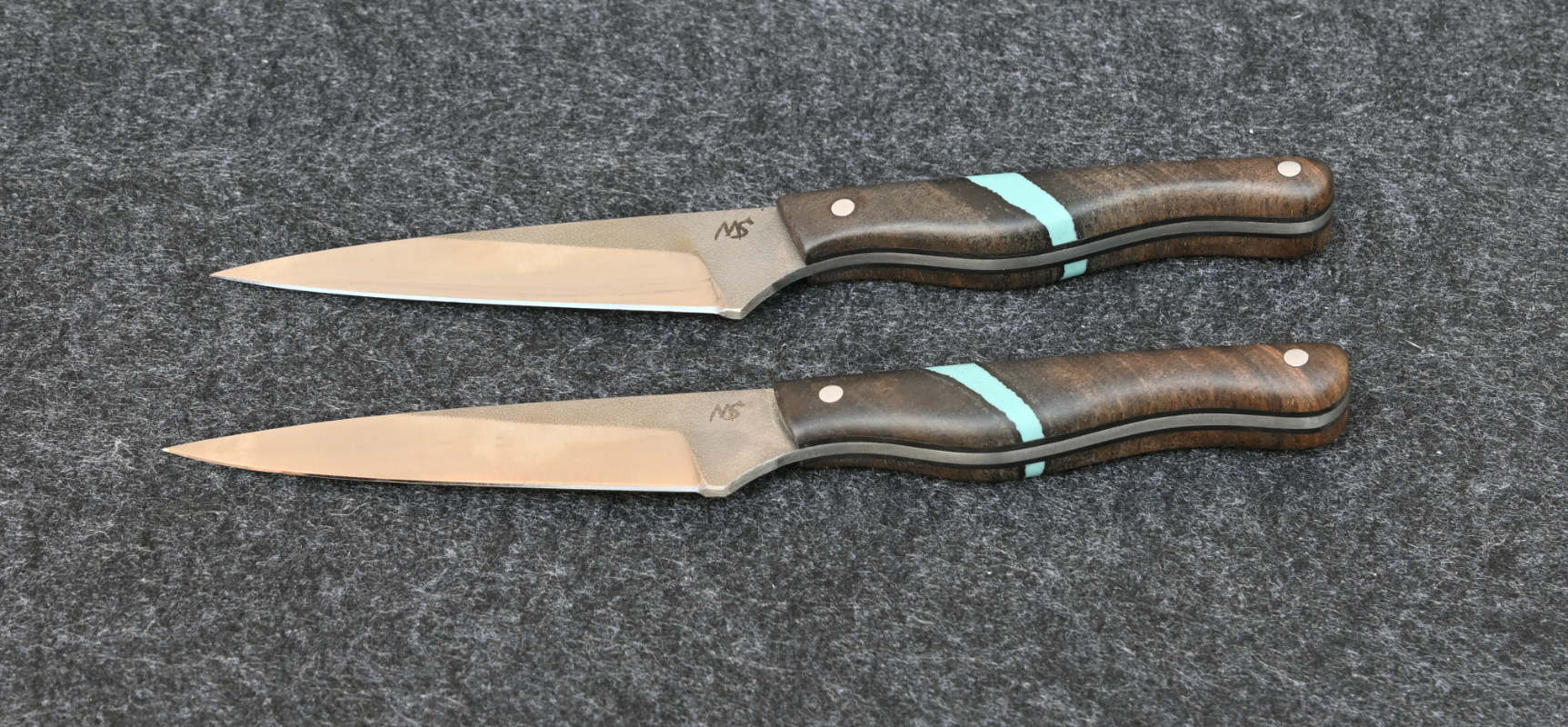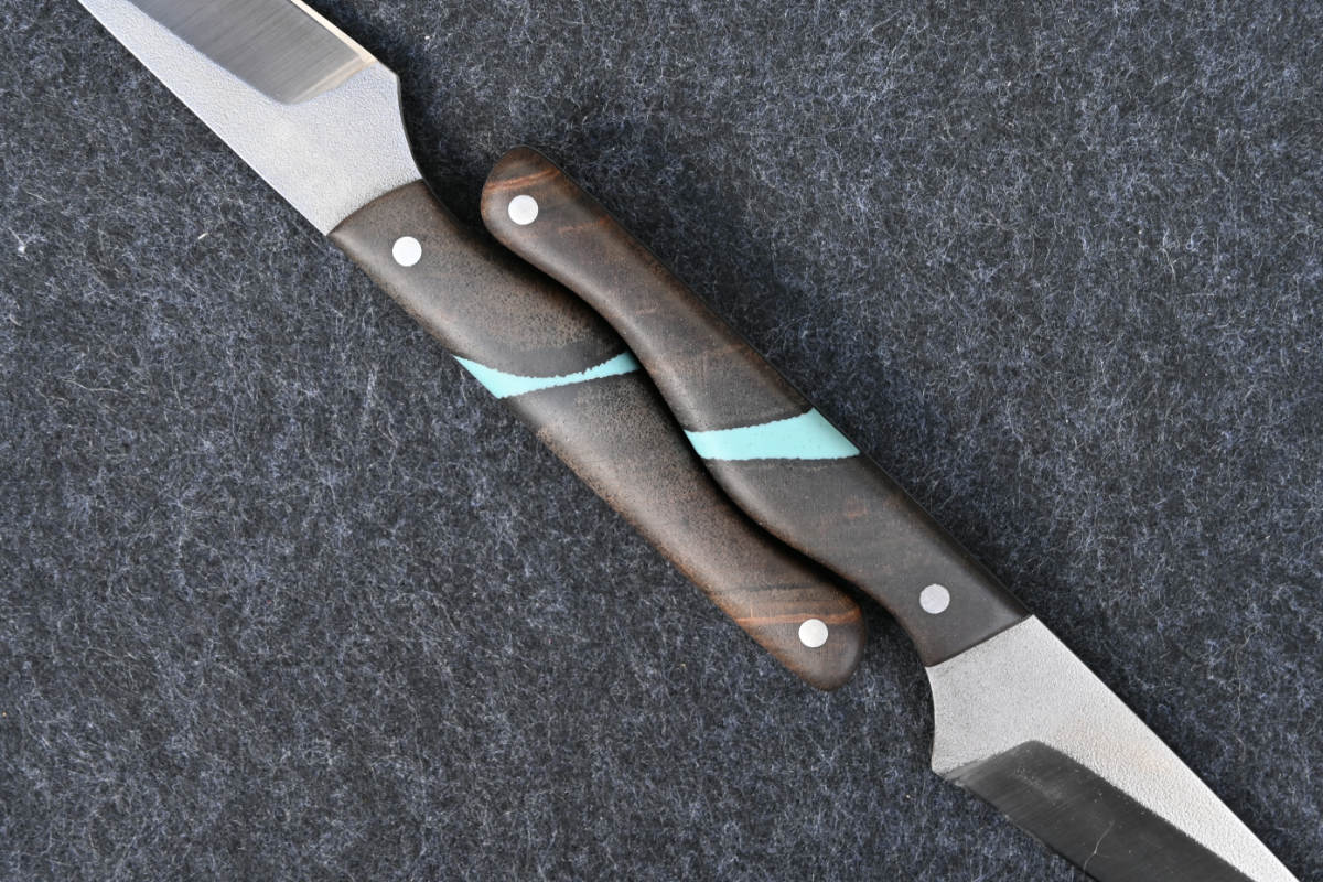 Die Griffe bestehen aus Mooreiche und etwas türkisem Epoxi.