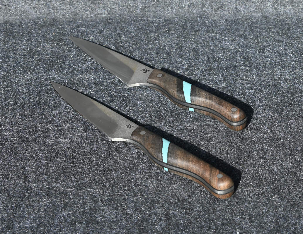 Die Griffe bestehen aus Mooreiche und etwas türkisem Epoxi.