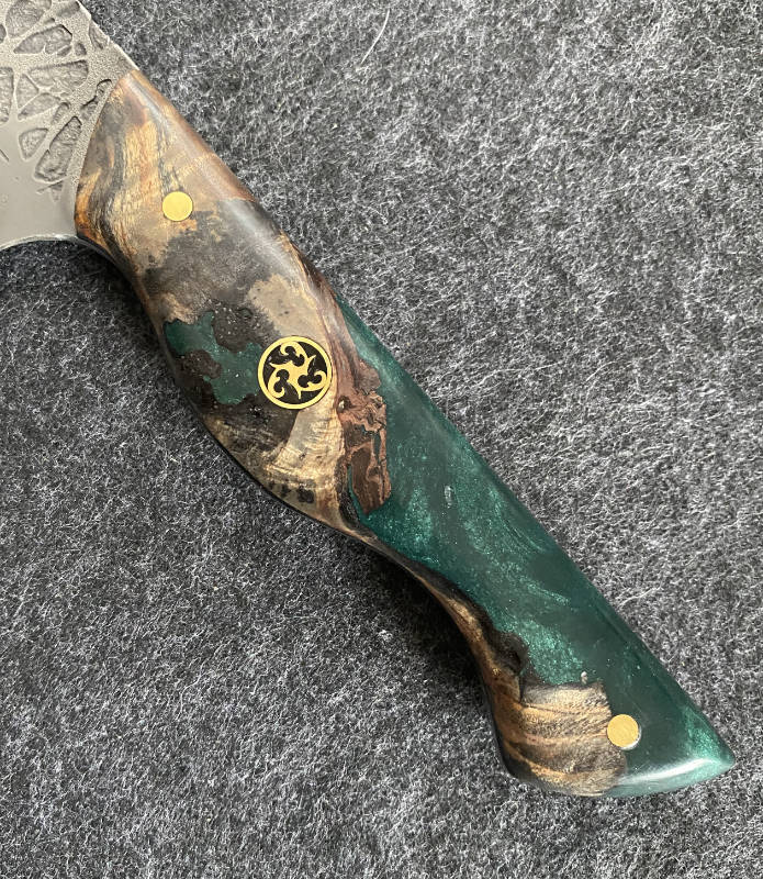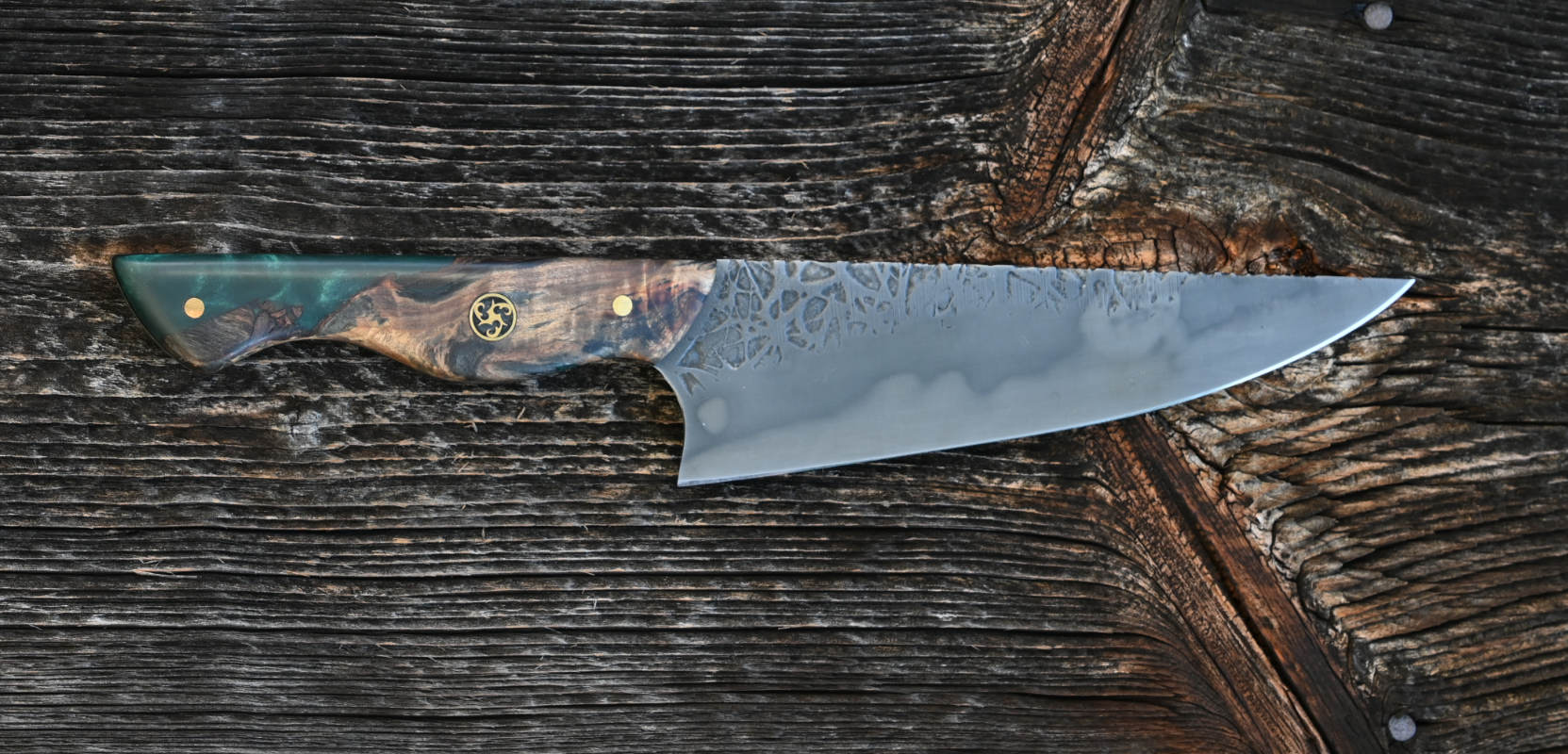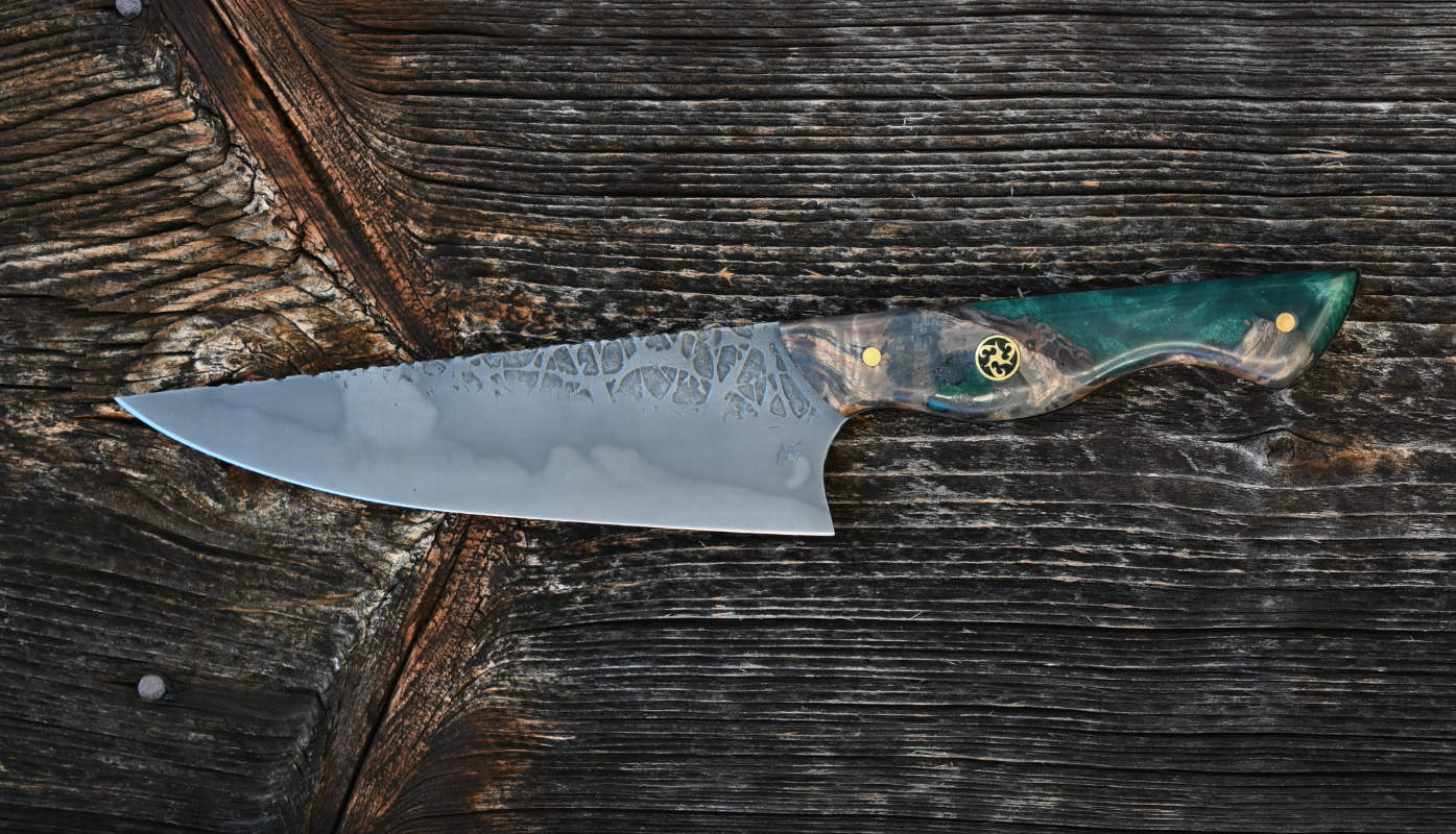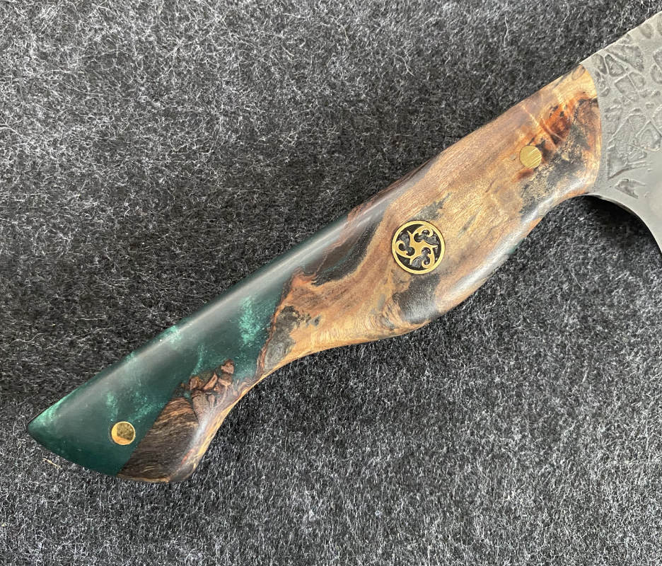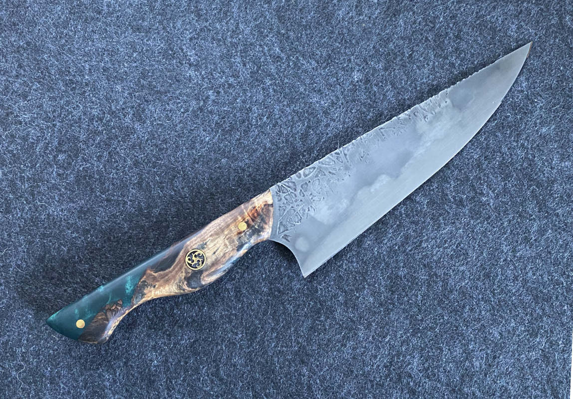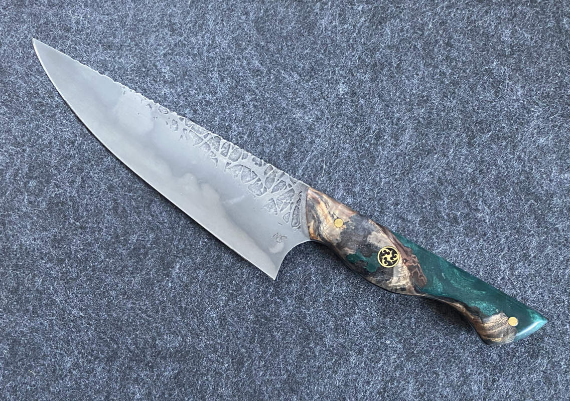 Trotz Messingpins bringt dieses Chefmesser gerade 155g auf die Waage.