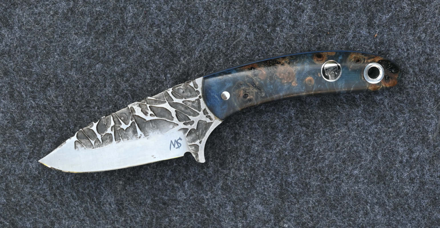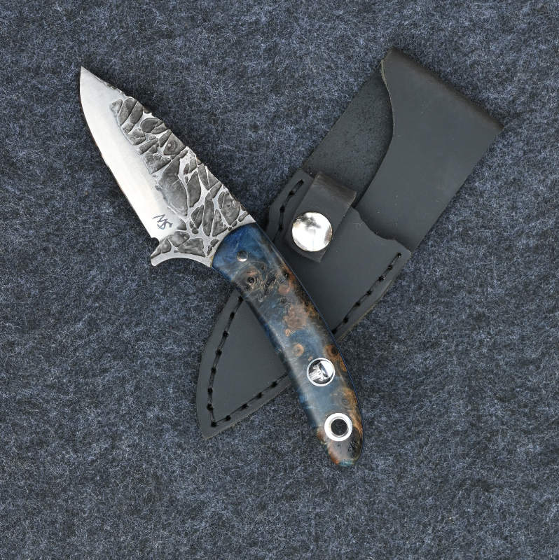 Der anschmiegsame Griff aus stabilisierter Pappelmaser ist ein wahrer Handschmeichler für eine kleinere Hand.