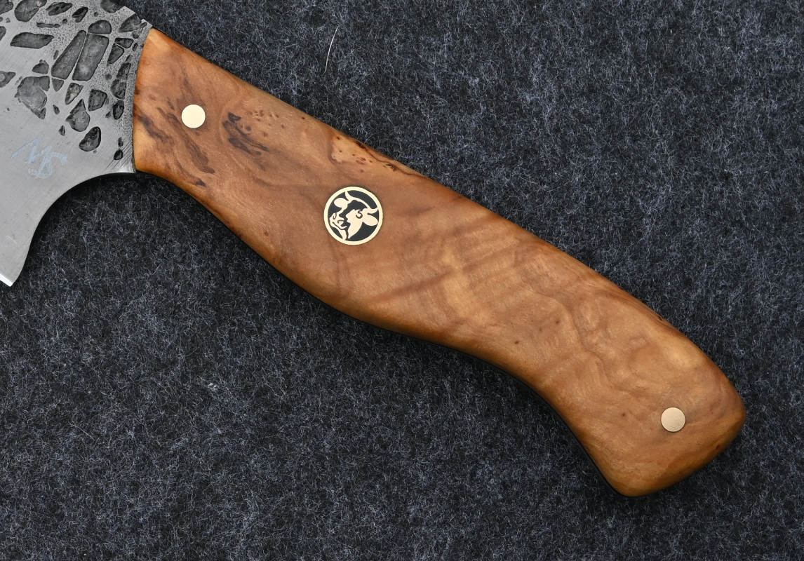Die Wahl viel auf 125sc Kohlenstoffstahl und andalusisches Olivenholz als Griff.