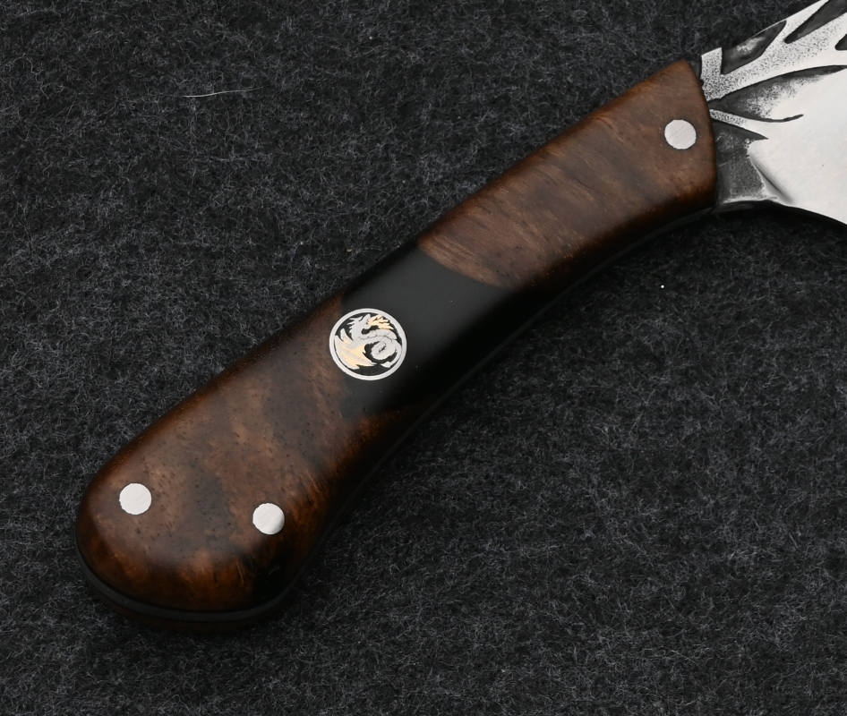 Der Griff wurde aus stabilisiertem Apfelholz aus der Region gefertigt.