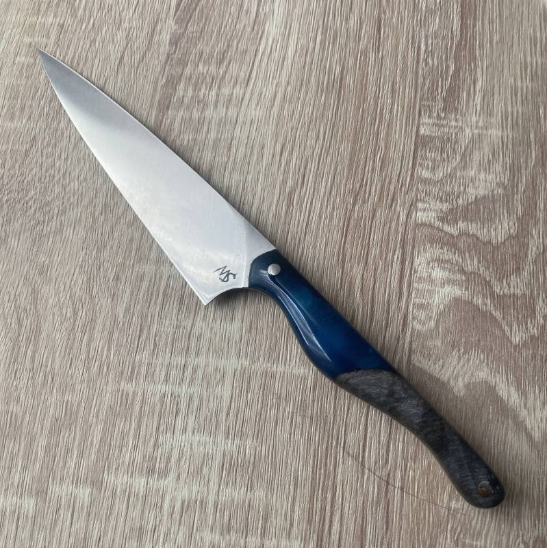 Filigranes Küchenmesser aus rostfreiem 14c28N. Gehärtet auf 60HRC.