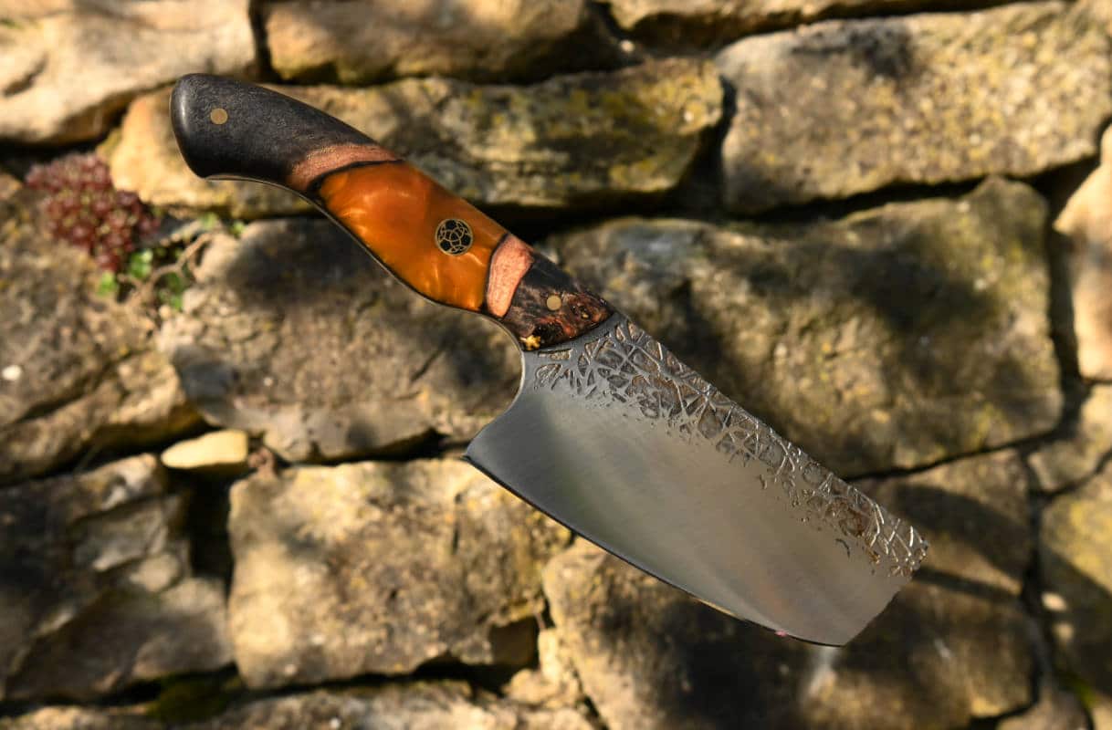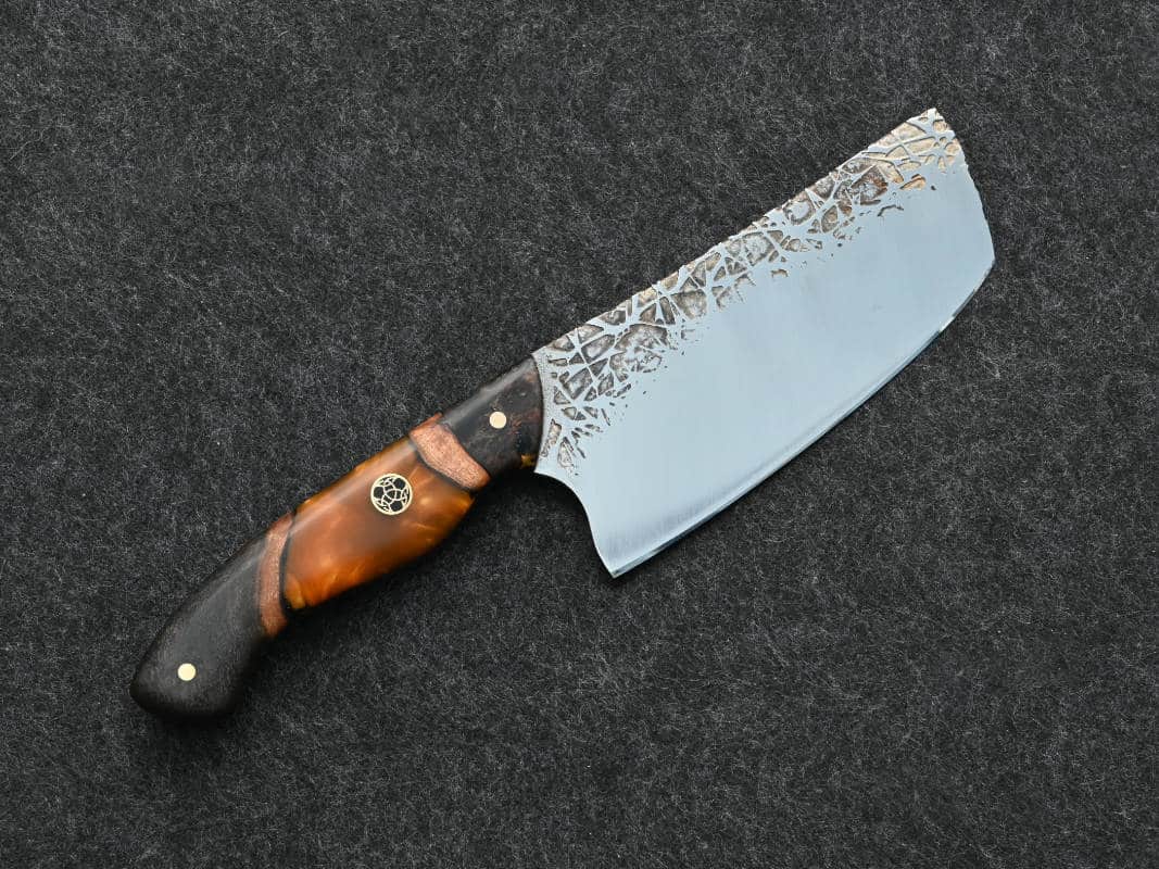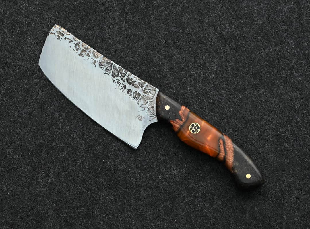 Kurzes Nakiri mit geätzter Klinge dünn ausgeschliffen. Der Griff ist aus einem Hybridmaterial gefertigt.