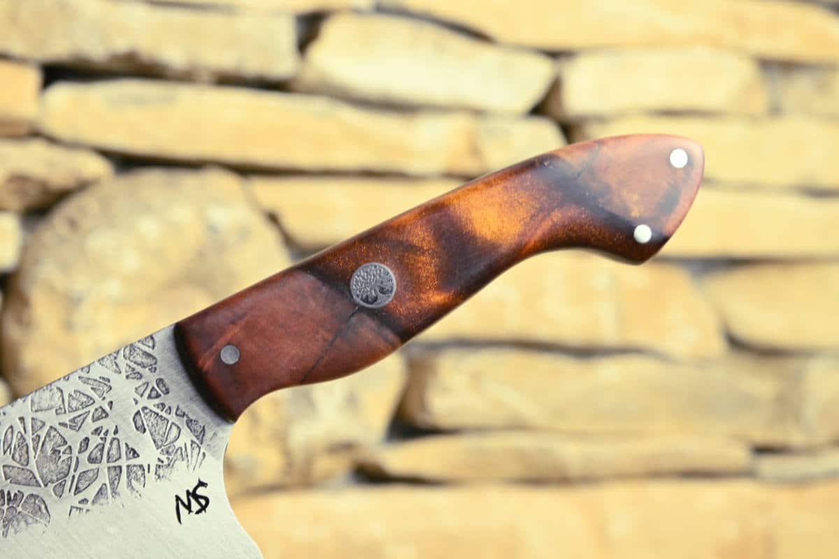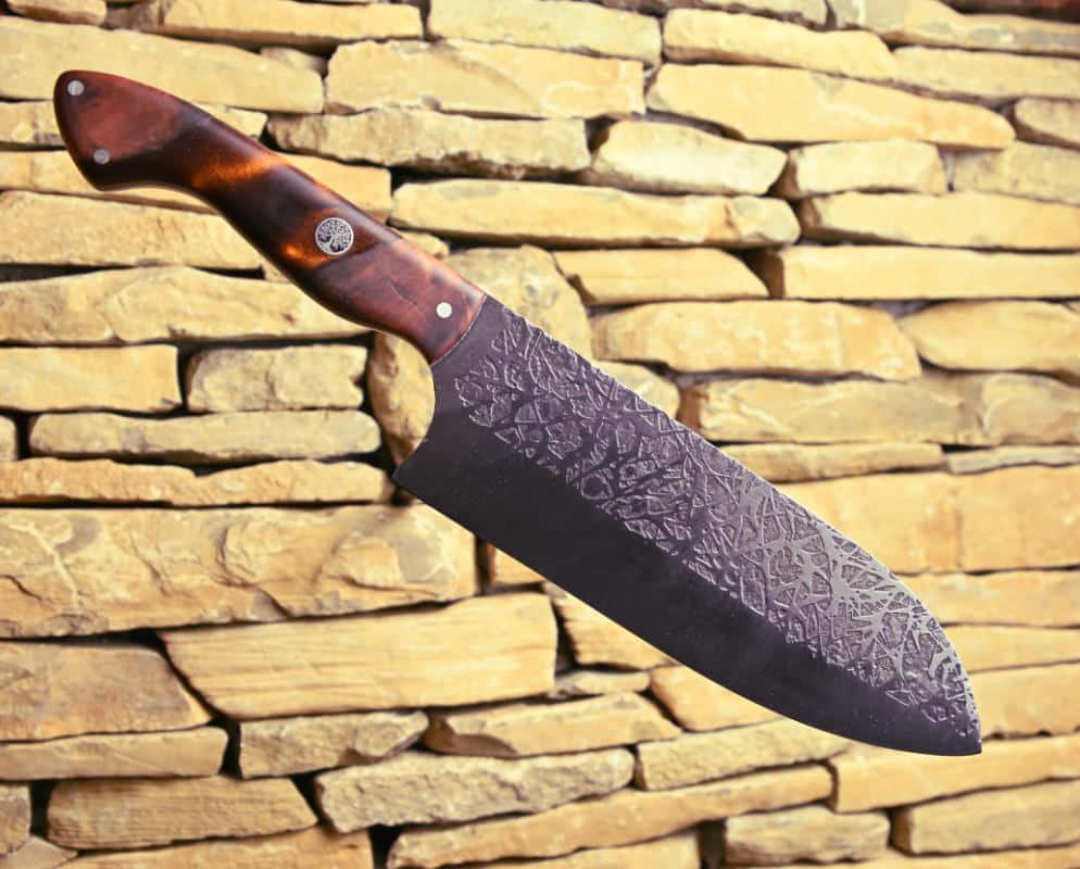 Großes Santoku aus rostfreiem Stahl mit geätztem Muster in der Klinge ein Universeller Helfer in der Küche