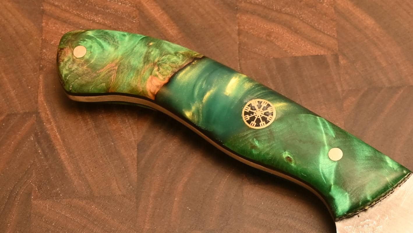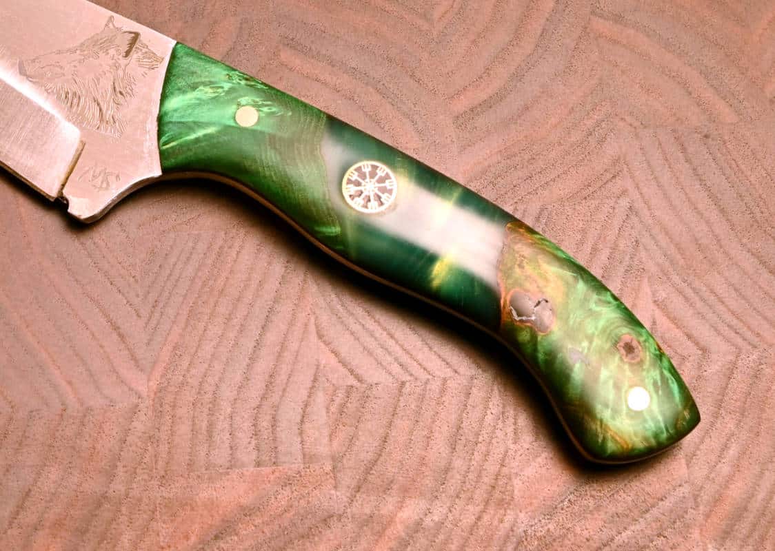 Handliches Jagsmesser für die Hosentasche mit Lasergravur auf der Klinge.